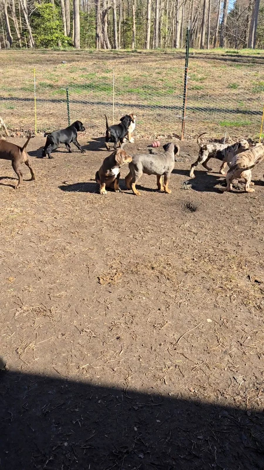 Our puppies include brindle, red merle, blue merle, chocolate, and black. Colors will vary depending on the parent dogs.