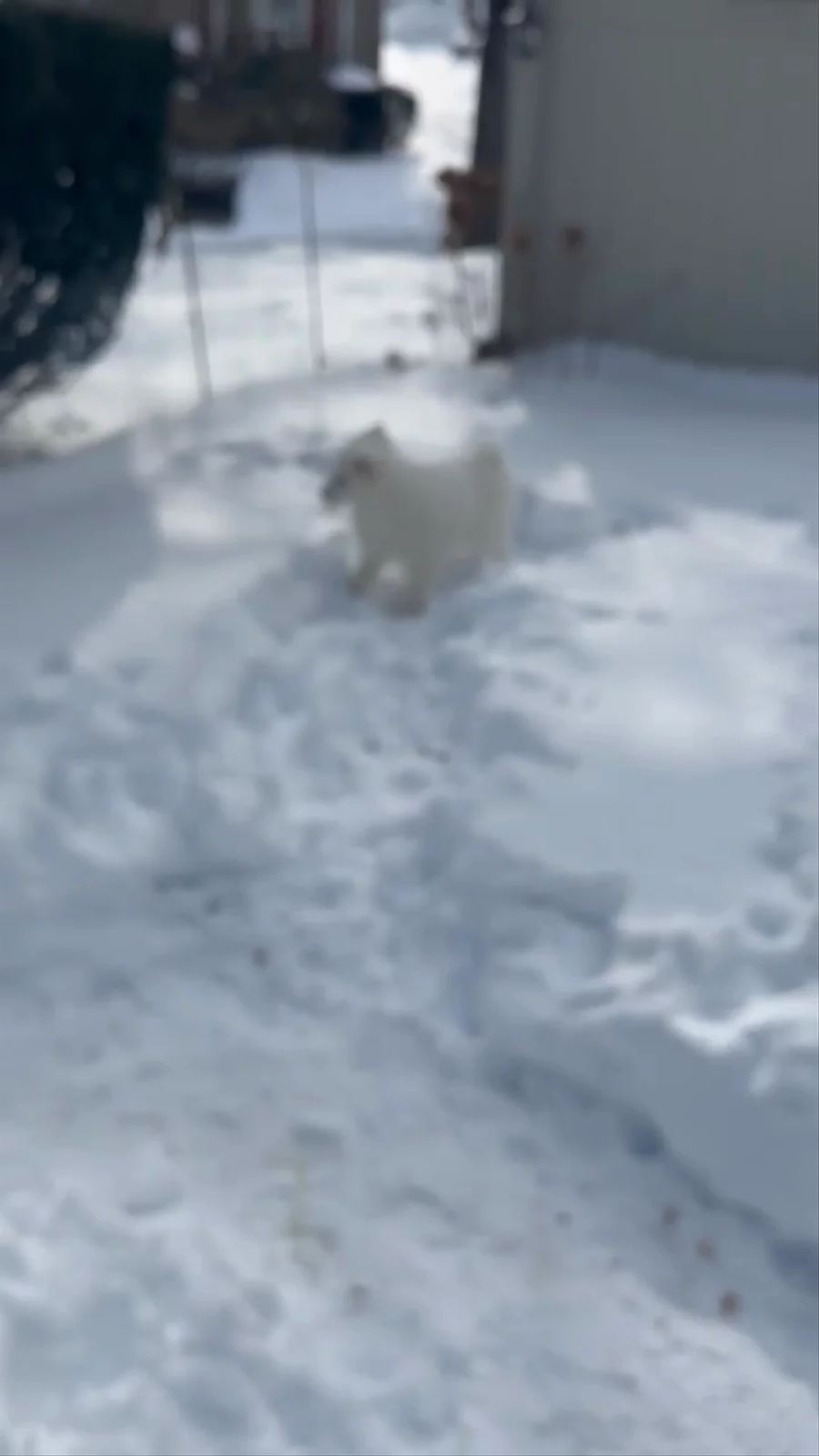 Sent to us from Ara's new family in MA. They recently got 30 inches of snow, and this little Samoyed puppy is LOVING it!!! His owner is the only one freezing 😅