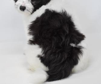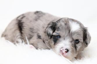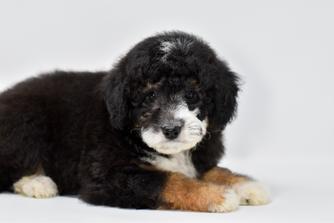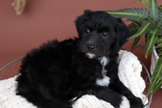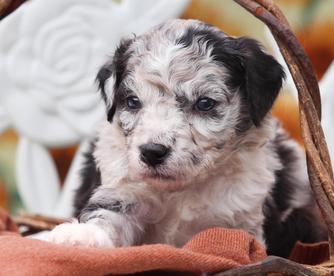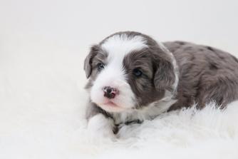 Our Bordoodle puppies include black, blue merle, blue, gold, brindle, lilac, red merle, sable merle, sable, saddleback sable, seal, slate, white and black, white and blue, white and blue merle, red, white and red, white and gold, white and seal, white and red merle, and white ticked. Assorted Doodle Crosses puppies include sable, black and tan, black, black tri-color, and black and white. Colors will vary depending on the parent dogs.