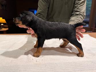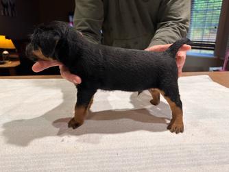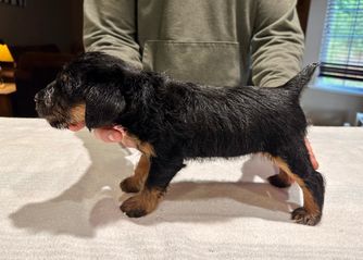 I'm Sara D., the breeder behind Oregon Jagdterrier located in Monroe, OR. We breed athletic Jagdterriers with fantastic temperaments, desirable conformation, and tenacity. They have a natural skill for tracking and are great farming and ranching dogs or just general companion animals for an active family.
