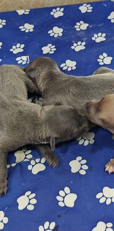 We have a new litter of puppies! 2 blue females, 1 fawn female, 2 blue fawn males and 1 blue boy!