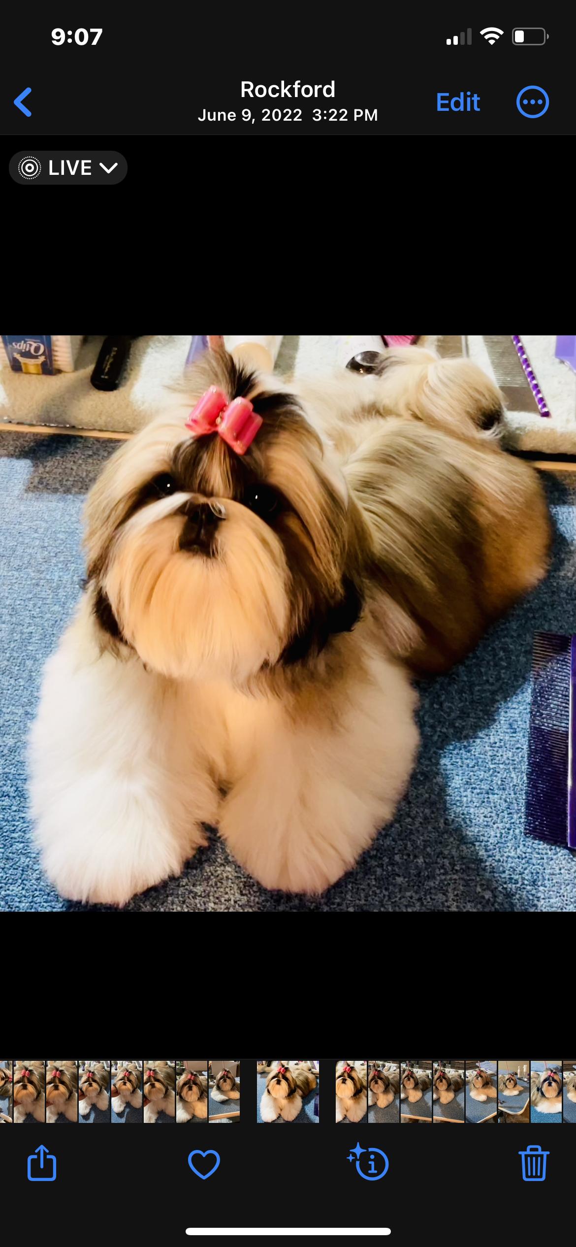 Angel is a male Shih Tzu almost 4 years old. Carefully selected as a great representative of his breed, Rosalee decided to make him part of their program. Rosalee has passed Good Dog’s screening process, which involved a review of their breeding practices, environment, and the mental and physical health of their dogs.