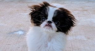 Our Japanese Chin puppies include red and white, sable and white, and black and white. Colors will vary depending on the parent dogs.