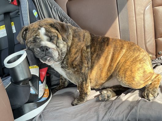 Mocha is a female Bulldog. Carefully selected as a great representative of her breed, Eliza decided to make her part of their program. Eliza has passed Good Dog’s screening process, which involved a review of their breeding practices, environment, and the mental and physical health of their dogs.
