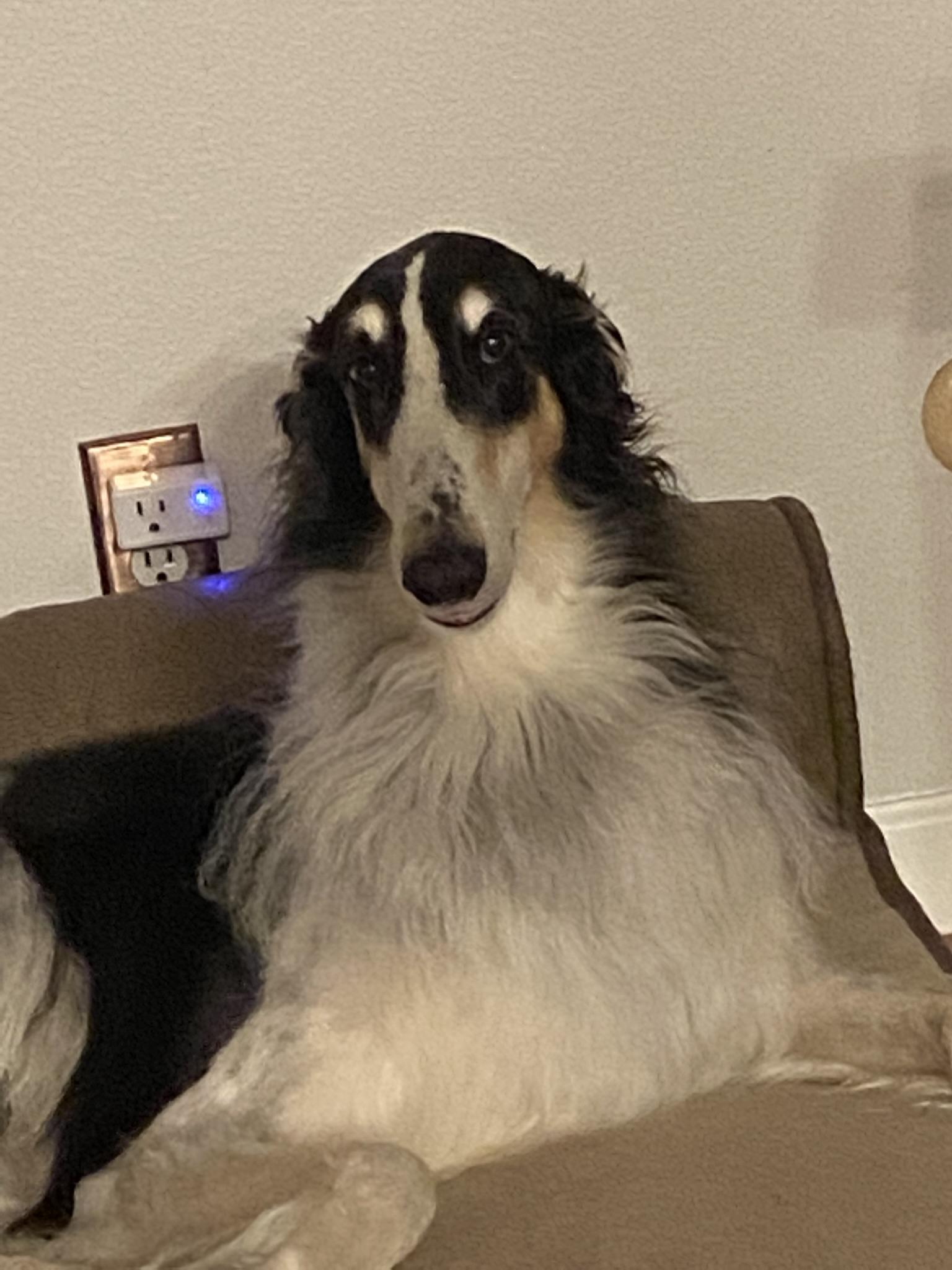 Cody is a male Borzoi. Carefully selected as a great representative of his breed, Suzanne decided to make him part of their program. Suzanne has passed Good Dog’s screening process, which involved a review of their breeding practices, environment, and the mental and physical health of their dogs.
