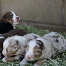 Our puppies include black & white, red merle, blue merle, red, black tri-color, and red tri-color. Colors will vary depending on the parent dogs.