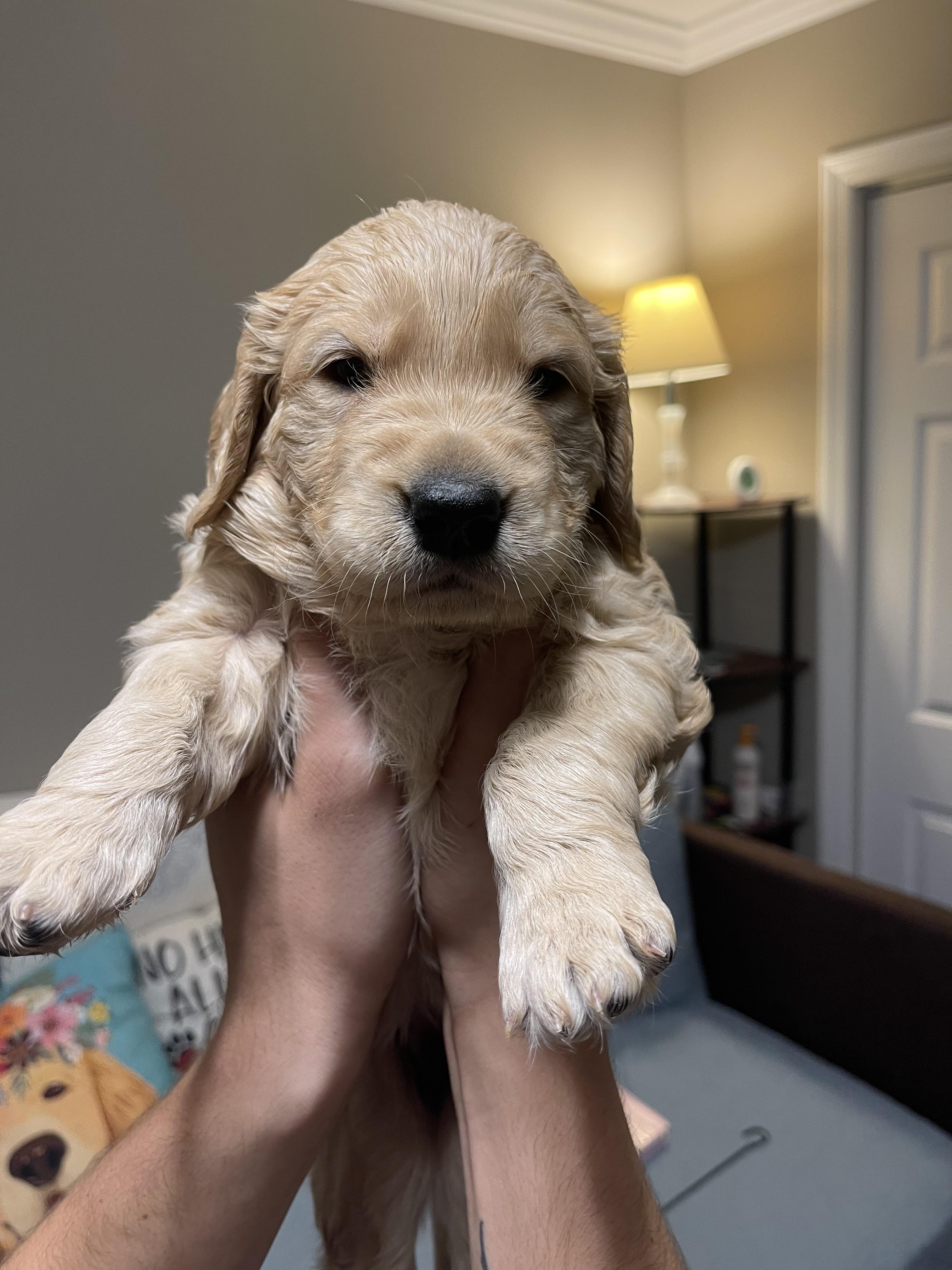 I'm Hanna O., the breeder behind O’Shields Golden Paws located in Campobello, SC. We are an in-home hobby breeder who believes in healthy breeding practices including genetic & OFA testing, puppy socialization, and lots of love & physical touch from our family starting from birth. It is our top priority to make sure each of our puppy families welcomes a happy and healthy puppy!