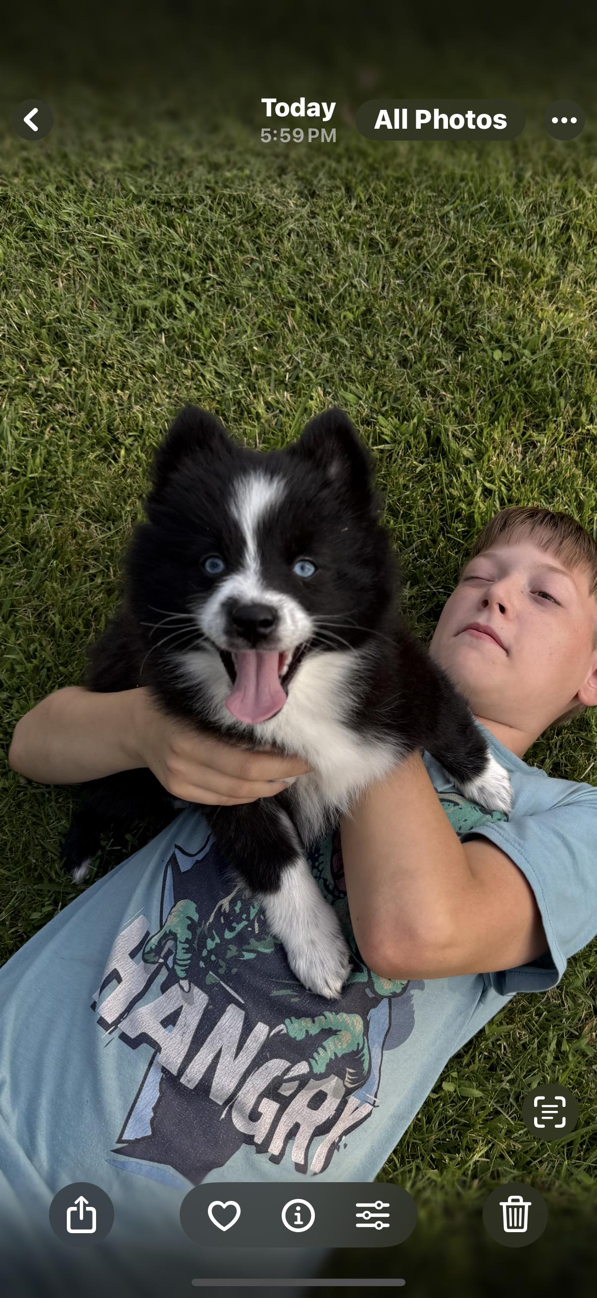 Jasper is a love bug he is a pomsky and has best of both worlds. He is smaller average weight is 14lbs