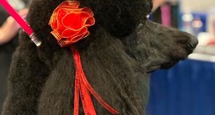 When I was 14, my mom bought my a poodle mix (small grey dog in my photo). I immediately fell in love with poodles. Every time I met a standard poodle, I knew that that was going to be my next dog and that I wanted to be a breeder. My first female, Onyx passed all of her health testing and proved her worthiness as a breeding female by her success in various performance sports.