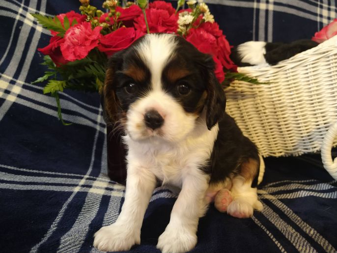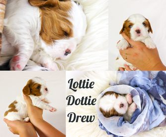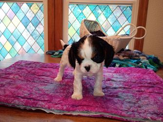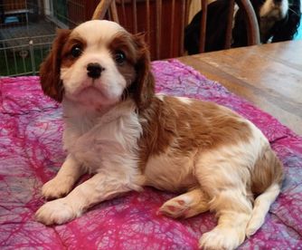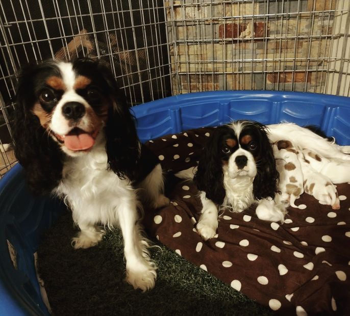 Our puppies include blenheim and tri-color. Colors will vary depending on the parent dogs.