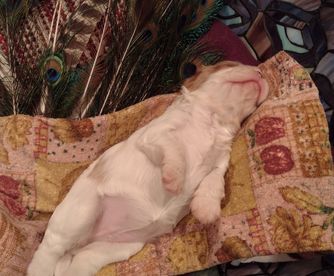 Dobby is a fun loving fetch fanatic but he is always up for a good snuggle. He will hop right in the shower with you to make sure you're never lonely. He is a beautiful boy with gorgeous feathering. He is 100% DNA clear for EFS, DECC, DM, and MCADD so none of his puppies can ever develop any of those conditions. He is also OFA clear for heart, eyes, and patellas.