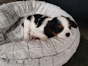 Several years ago our entire family fell in love with our rescue cav mix from the humane Society named Ladybug and the addiction took root. We got our original stud, Bam Bam, for my cousin Tori and then we got our first girl, Pebbles. Since then we have done lots of health testing and have brought 4 beautiful litters into the world. We are a cavalier family for life :)