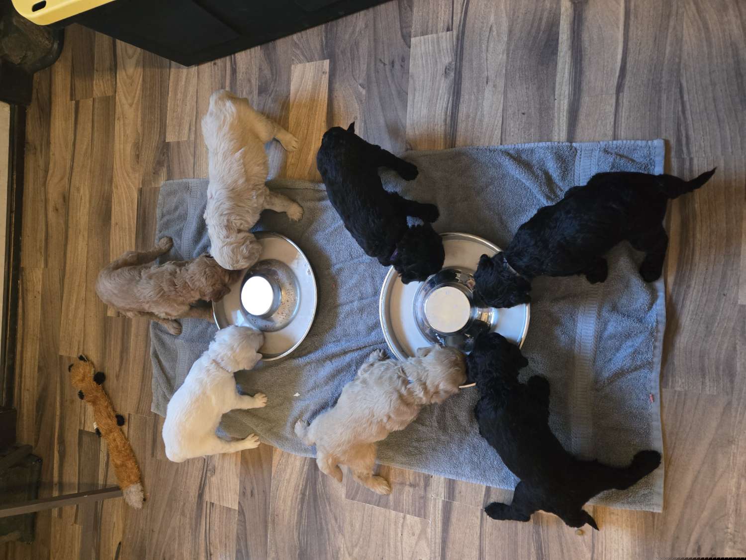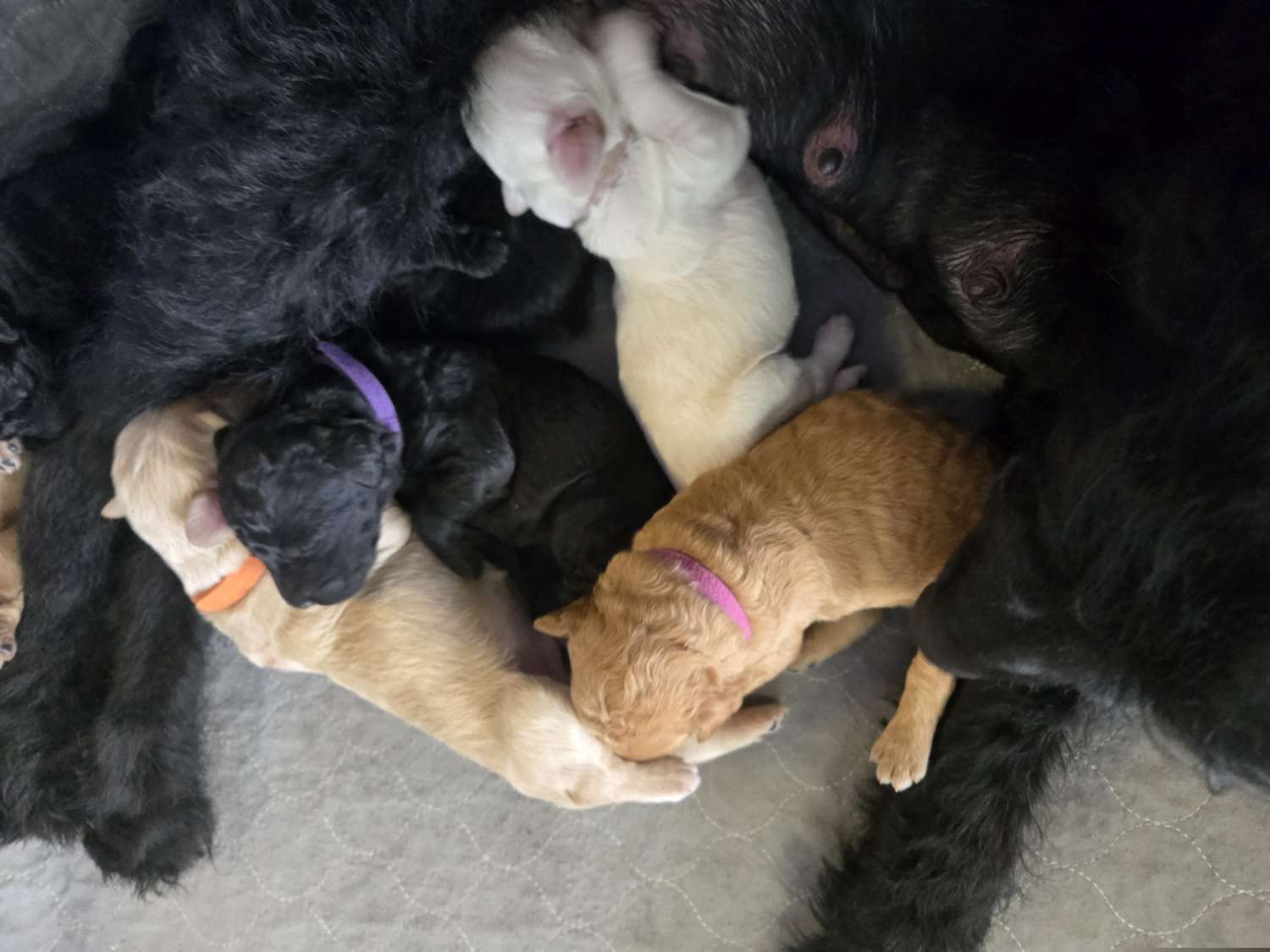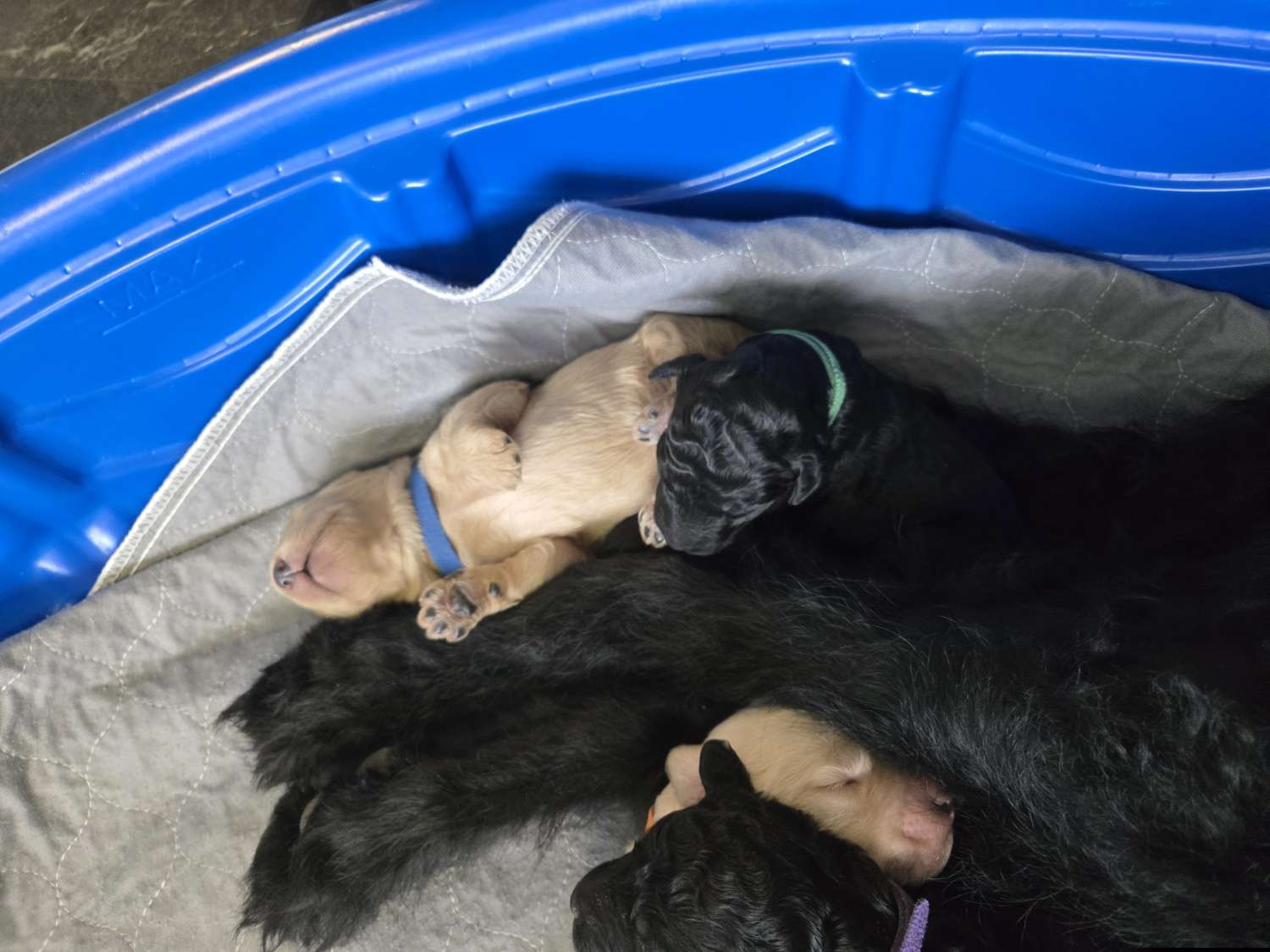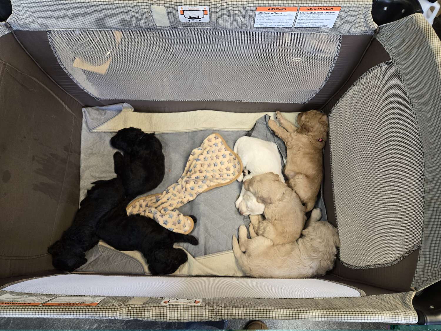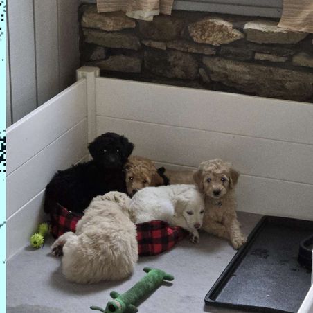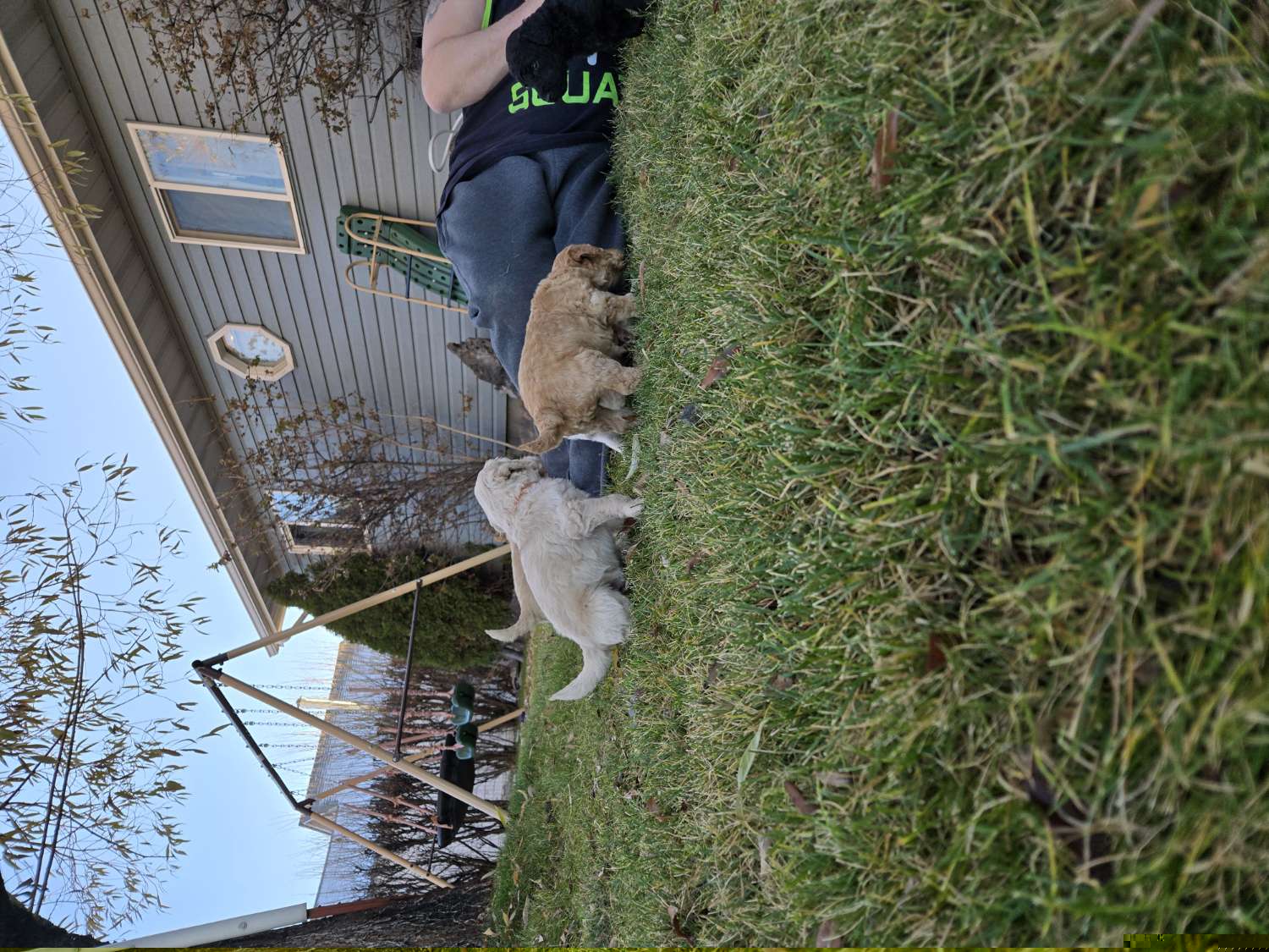 I'm Danelle H., the breeder behind Ottie's Angels located in Butte, MT. Mom is a Goldendoodle that we have had since the minute she was born. Dad is a Bernedoodle we adopted at 7 weeks. We have had both of them their whole lives. They are both mild tempered, playful and sweet. Kitty (the Mom) was born in our house. Her mom is Ottie who was also a Goldendoodle and her dad Clifford was a Royal Poodle. Kitty's dad Clifford was my Mother in laws dog so we not only have mom and dad to this litter, we have Moms parents also. We take so much time and care into these babies: from socializing them, starting to potty train, making sure they are use to children and other animals, they have their dew claws removed at 3 days, microchipped before going home, vet checked, smell blanket and toys from the litter play pen.