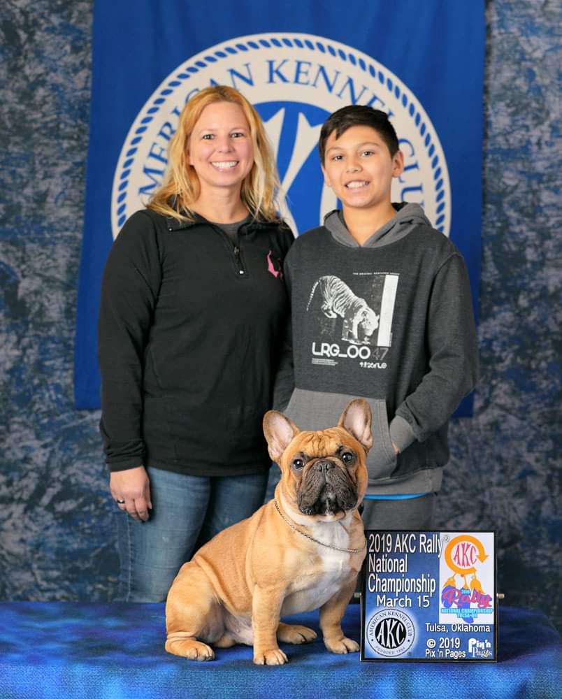 My dogs compete in companion events. Obedience, scent work, agility, and rally. They are some of only a handful of French bulldogs to do so. My stud is only the third Frenchie in AKC history to win the Rally Obedience Master Title!