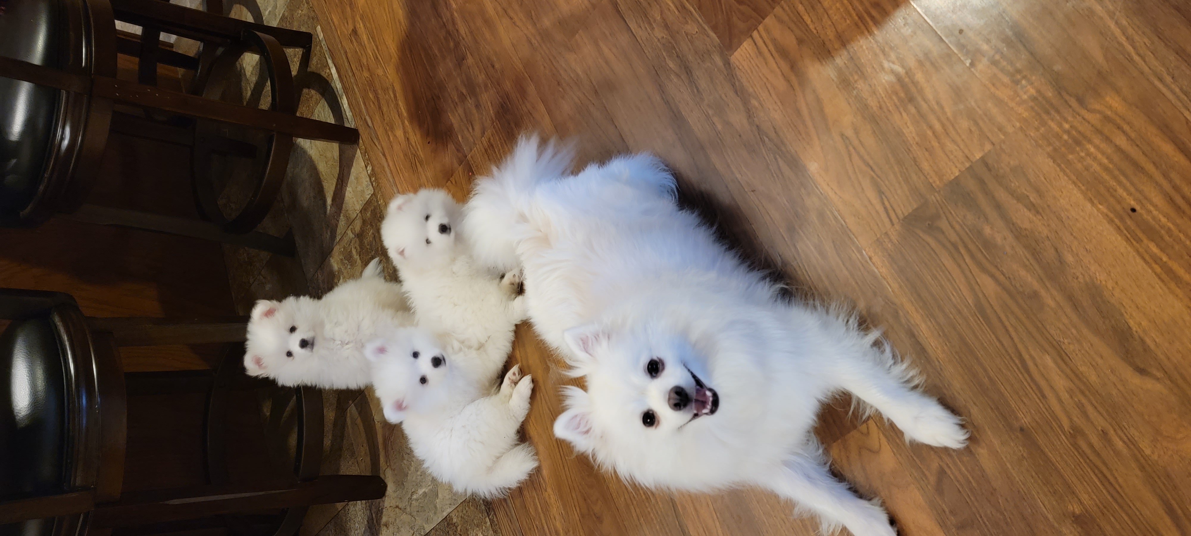 I'm Leigh Ann M., the breeder behind Our Eskies located in Johnstown, PA. We are not habitual breeders. We have 2 eskies and a pom. Our Alaska has only had one other litter and we think this will be her last. Our eskies live in our house, never crated or chained up. They are part of our family and our 3 kids love them so much!