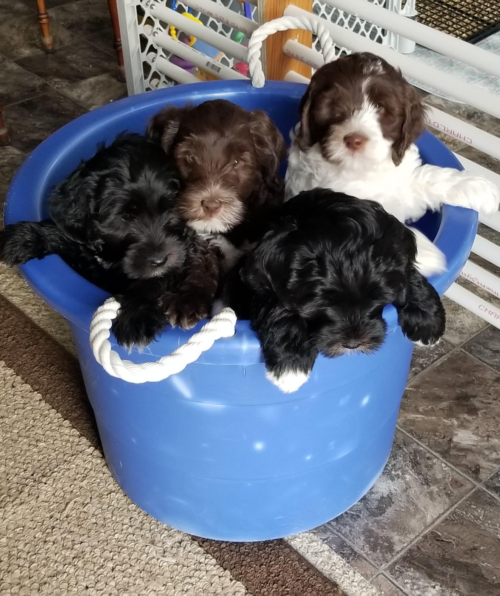 Our puppies include chocolate and black. Colors will vary depending on the parent dogs.