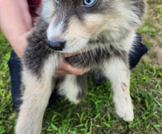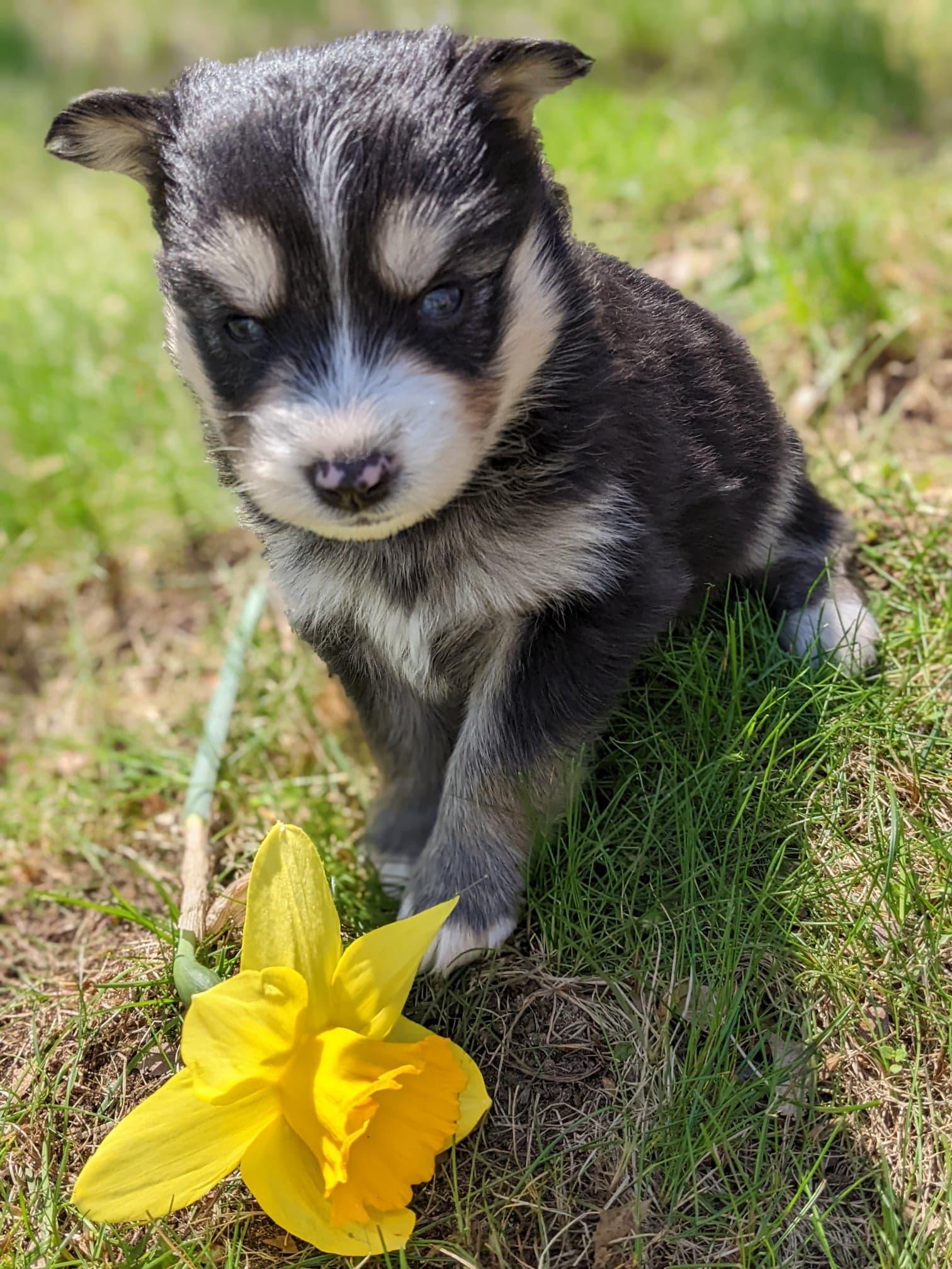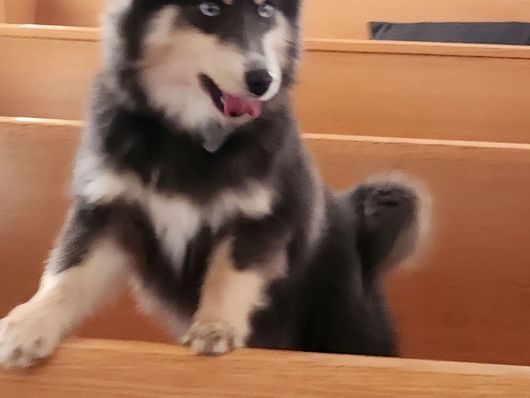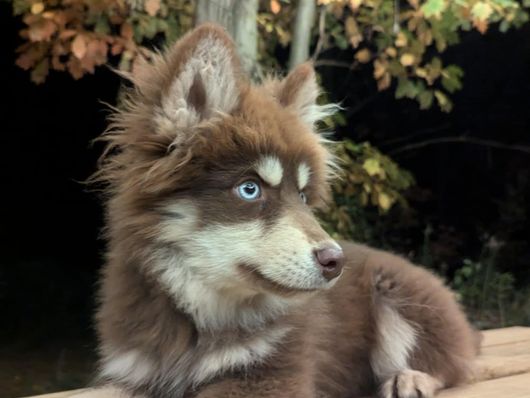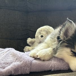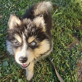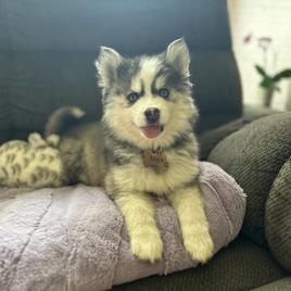 April was easy to work with. She was friendly, responsive, and knowledgeable. I especially appreciated her willingness to help when I had difficulty navigating the site. Our puppy was well cared for and loved. It shows in how she interacts with me and my family. I would absolutely recommend her to any friend or family member looking for a pomsky puppy.