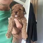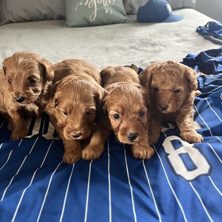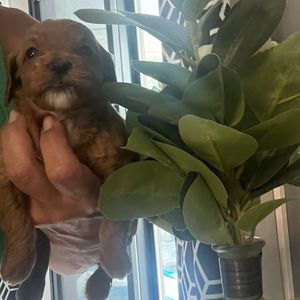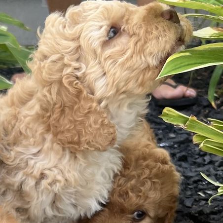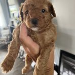 🐶 1 tiny female Mini Goldendoodle — apricot with a little white on her chin, 10–12 lbs full grown, petite, playful, and oh-so-adorable!