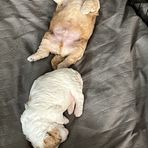 The light apricot is a male and the is a female. They are both 7 pounds today they will be 35 to 45 pounds at full grown.. they are potty trained and eating on and oh super social and loving!