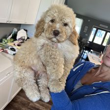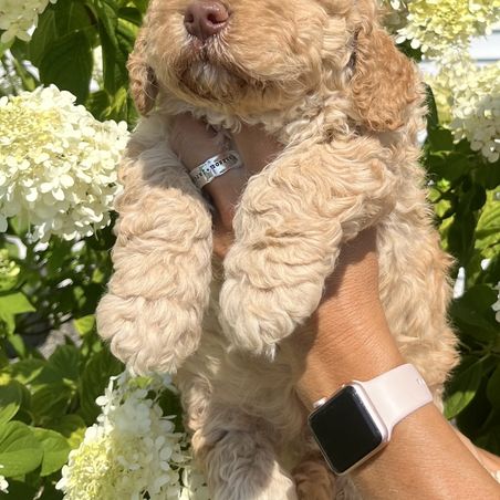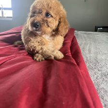 Wilma is a three year-old mini goldendoodle who is apricot with soft light curls. She is the sweetest kindest little dog you will ever meet Wilma and Murphy's puppies will be between 10 and 15 pounds. She is very fine and petite. She's kind caring and loving they make beautiful puppies.