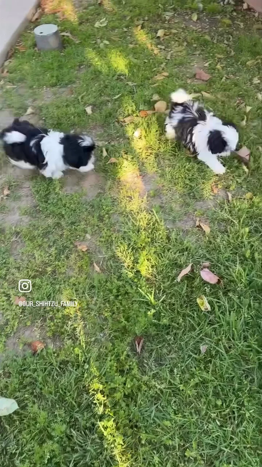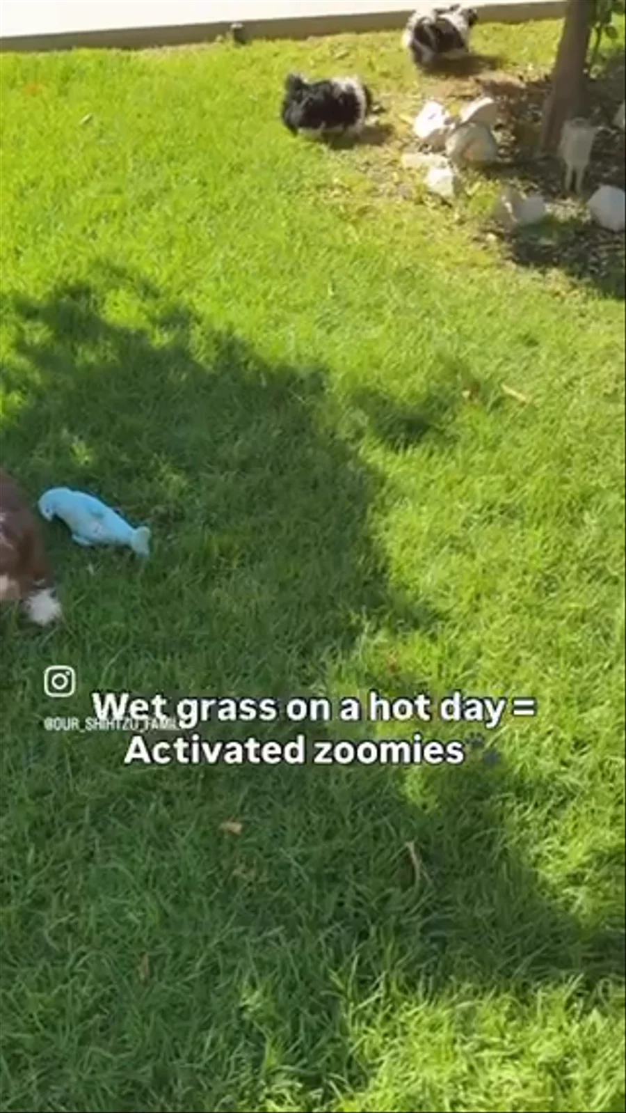 Oreo and Trixie enjoying the cool wet grass 🐾