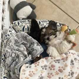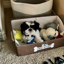 It was such a happy coincidence that we had been wanting a Shih Tzu puppy that our daughter had her heart set on naming Biscuit when I checked out Good Dog and came across Evelyn’s pups and found one she had already named Biscuit!! Evelyn was very personable, responsive and provided regular updates and pics throughout the whole process. She was flexible with picking a meeting spot for our Gotcha Day, and she even gave us a bag of pup goodies & supplies to take home with a little blanket that he still sleeps with every night 😊. Evelyn made the puppy searching process so easy and stress free. And we couldn’t be happier with our fur baby, Biscuit, who has filled our home with even more fun and love!
