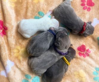 Our puppies include cream, fawn, white, black and tan, tricolors, fawn and white, white and fawn, blue fawn, and blue. Colors will vary depending on the parent dogs.