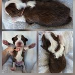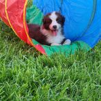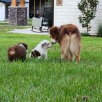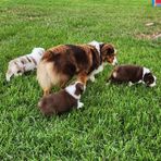 I'm so glad and thankful to find Out of Blue Aussies. Heather made the best possible experience for us in every step, communication, photos, videos. Dogs were growing in an incredible place, with love, care, healthy, training, keeping all the dogs records and behaviors. The result is that my puppy (Johnny) is the cutest sweet boy I've seeing, from the parents excellent DNA to the training and education he had at Out of Blue Aussies. Heather also gone above and beyond making a puppy book with all docs, certificates, information, etc... and supplying a beautiful wood box with dog toys, games, dog food, frisbee, small blanket with the Johnny's mother smell and a beautiful plush dog with a heart bit inside, and more. I strongly recommend Out of Blues Aussies. 10 out of 10.