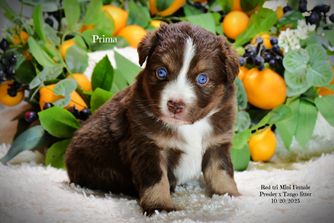I'm Marta B., the breeder behind Outback Mini Aussies located in Ranger, TX. For over 16 years, we have been raising Australian Shepherds in our home. We take pride in our dogs and want you to enjoy them as much as we do. Quality before quantity is our motto. Hoping every puppy we sell will bring joy to your heart for many years to come. All of our dogs are health tested through GenSol DX labs.