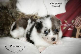 Shiloh is a bi blue Merle. Very unique and she is 19 inches tall. This girl has amazing puppies.