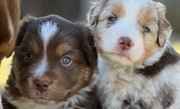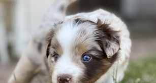 Our puppies include black, red merle, blue merle, and red. Colors will vary depending on the parent dogs.