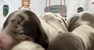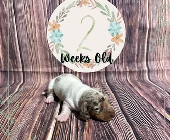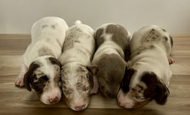 Our puppies include piebald, chocolate and tan, fawn (isabella) and tan, and dapple. Colors will vary depending on the parent dogs.