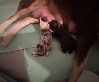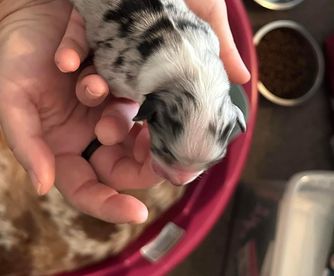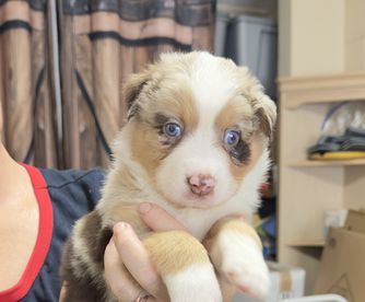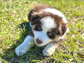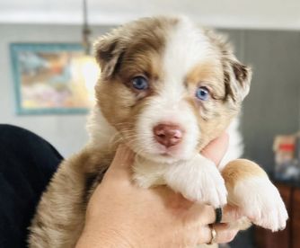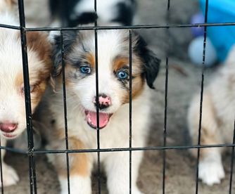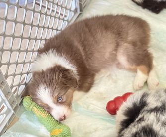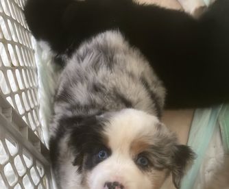 Our puppies include red merle, blue merle, black tri-color, and red tri-color. Colors will vary depending on the parent dogs.