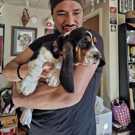 In my search for a basset hound I came across GoodDog. Reached out to Tiffany about her liter. Working with her was easy. Any and all questions were answered timely and detailed. She keeps you informed of how your puppy is doing and sends photos. Organizing a date and time to pick up you new best friend was easy to plan. I/we are so happy to have Burt!