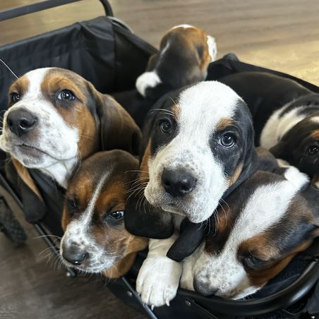 Tiffany was the ideal partner in finding a new addition to our fur-family. Wilbur, our Basset Hound baby, is the happiest, wiggle-est puppy I've ever had and you can tell he was raised as a part of a family. When picking up our puppy Tiffany was responsive, flexible, and kind. She shared a bunch of "starter" goodies with us that helped to make Wilbur's transition into our home less stressful all-round. If you have a need for floppy ears, puppy breath, and some extra love in your household, I highly recommend her puppies.