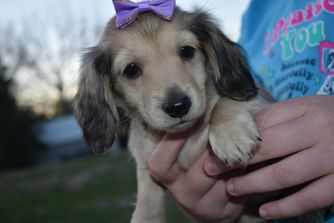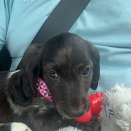 Owen’s Farm are amazing breeders to work with and handle all of our requests! Knowing our circumstances and making sure we were taken care of was their number one priority. My wife and I had asked for pictures for a couple of weeks as we lived in Iowa and Oakley (our pup) was down in Missouri and we wanted to see her fur colors (Brindle Dachshund) develop! They sent puppy photo shoots on request and are amazing people! I would highly recommend working with them to secure your next furry friend!!
