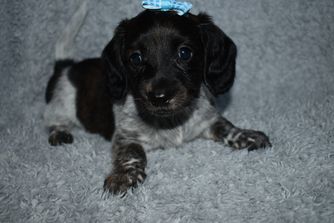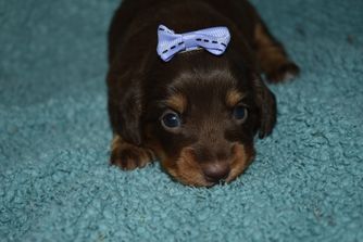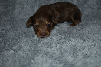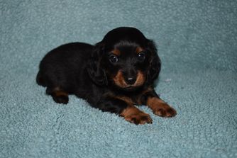 Dachshund puppies have longhaired coats. Coat types may vary depending on the parent dogs.