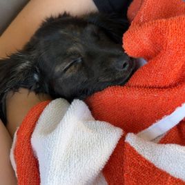 Pepper is a male Dachshund. Carefully selected as a great representative of his breed, Owens decided to make him part of their program. Owens has passed Good Dog’s screening process, which involved a review of their breeding practices, environment, and the mental and physical health of their dogs.