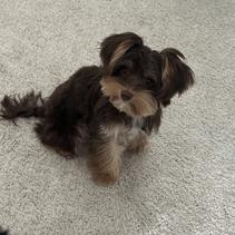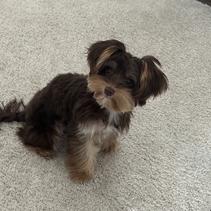 Meet Owensons’ Dussé, the pint-sized king of the castle. This AKC-registered liver/tan Yorkie may only weigh 3.5 lbs, but don’t let his size fool you—his presence is larger than life.