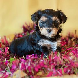 Meet Owensons’ Paloma, the definition of pure sweetness. This AKC-registered black/tan Yorkie weighs 6-7 lbs and is wrapped in the softest coat you’ll ever touch—but her heart is even softer.