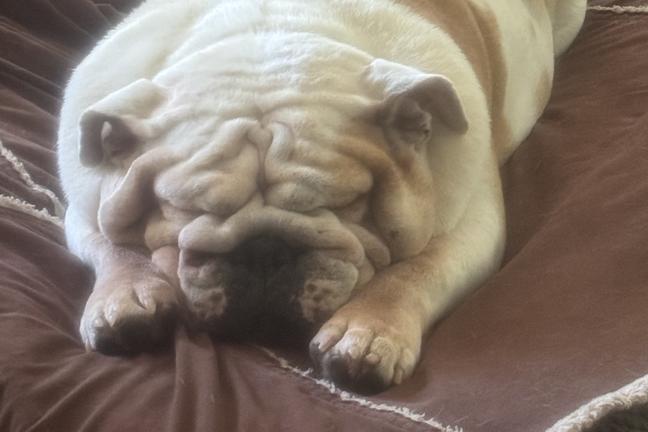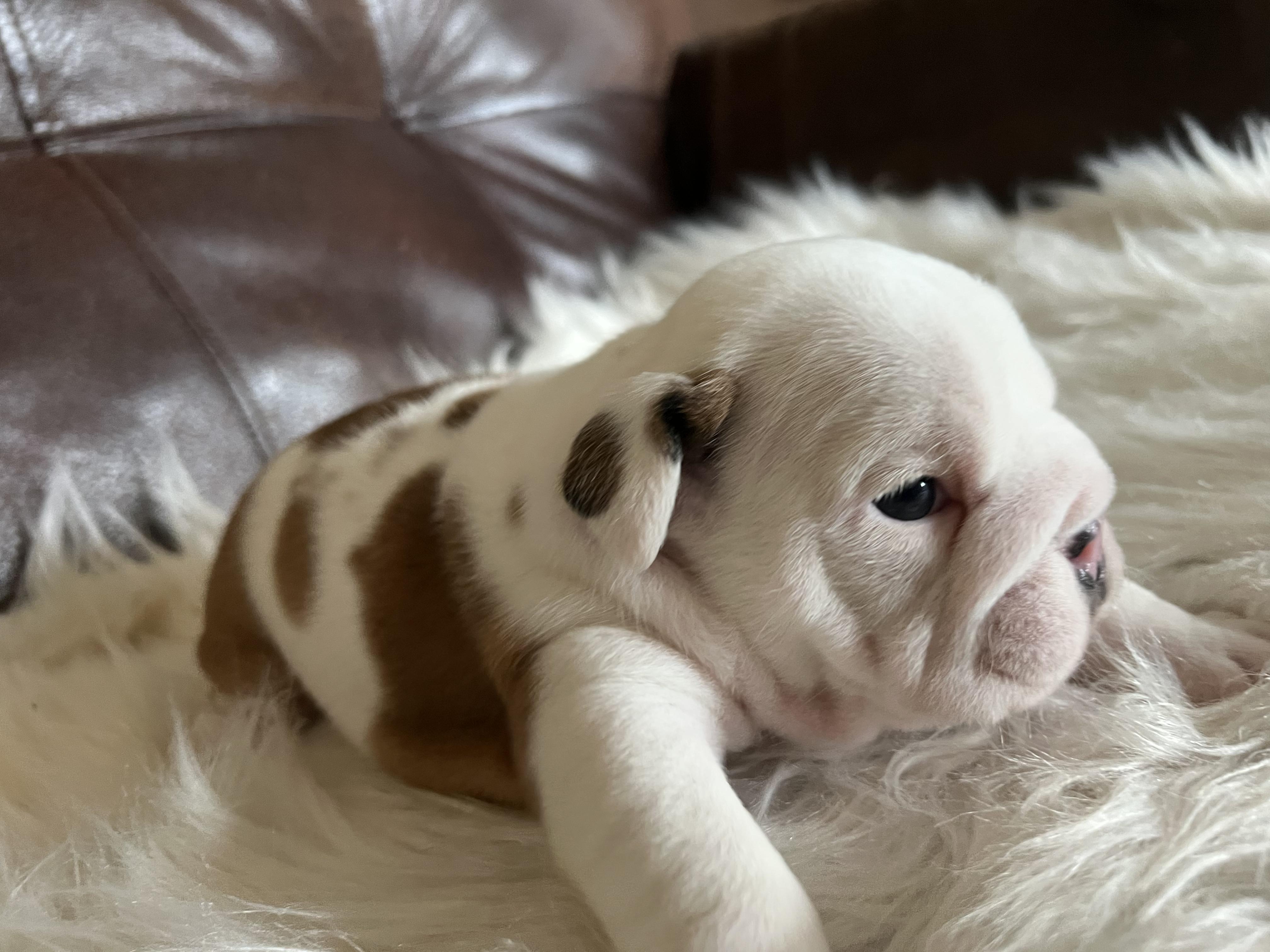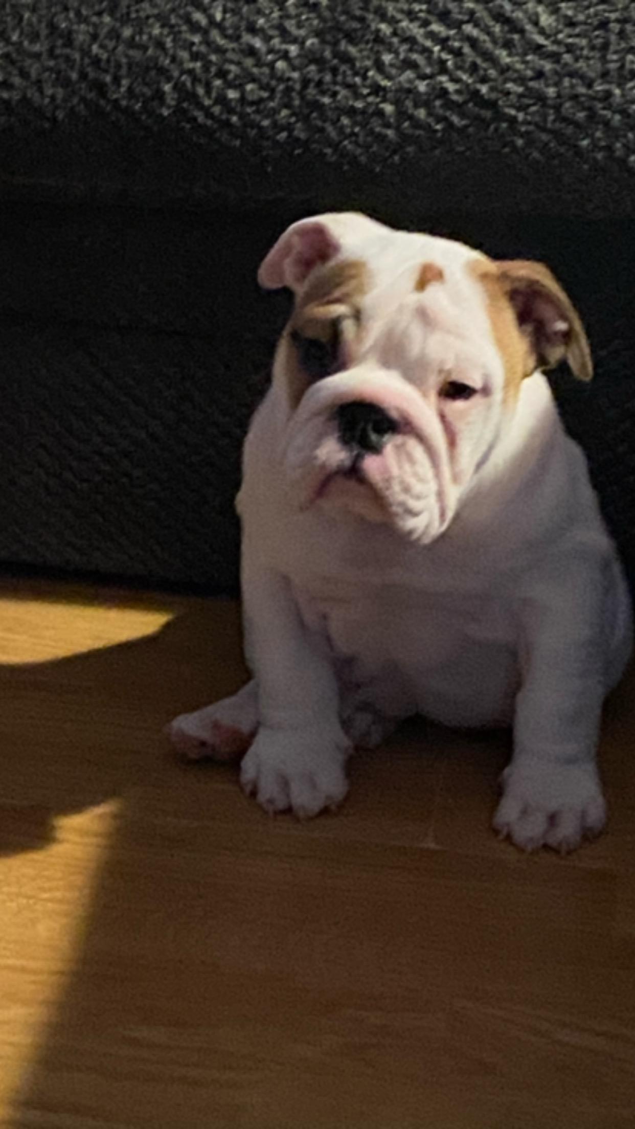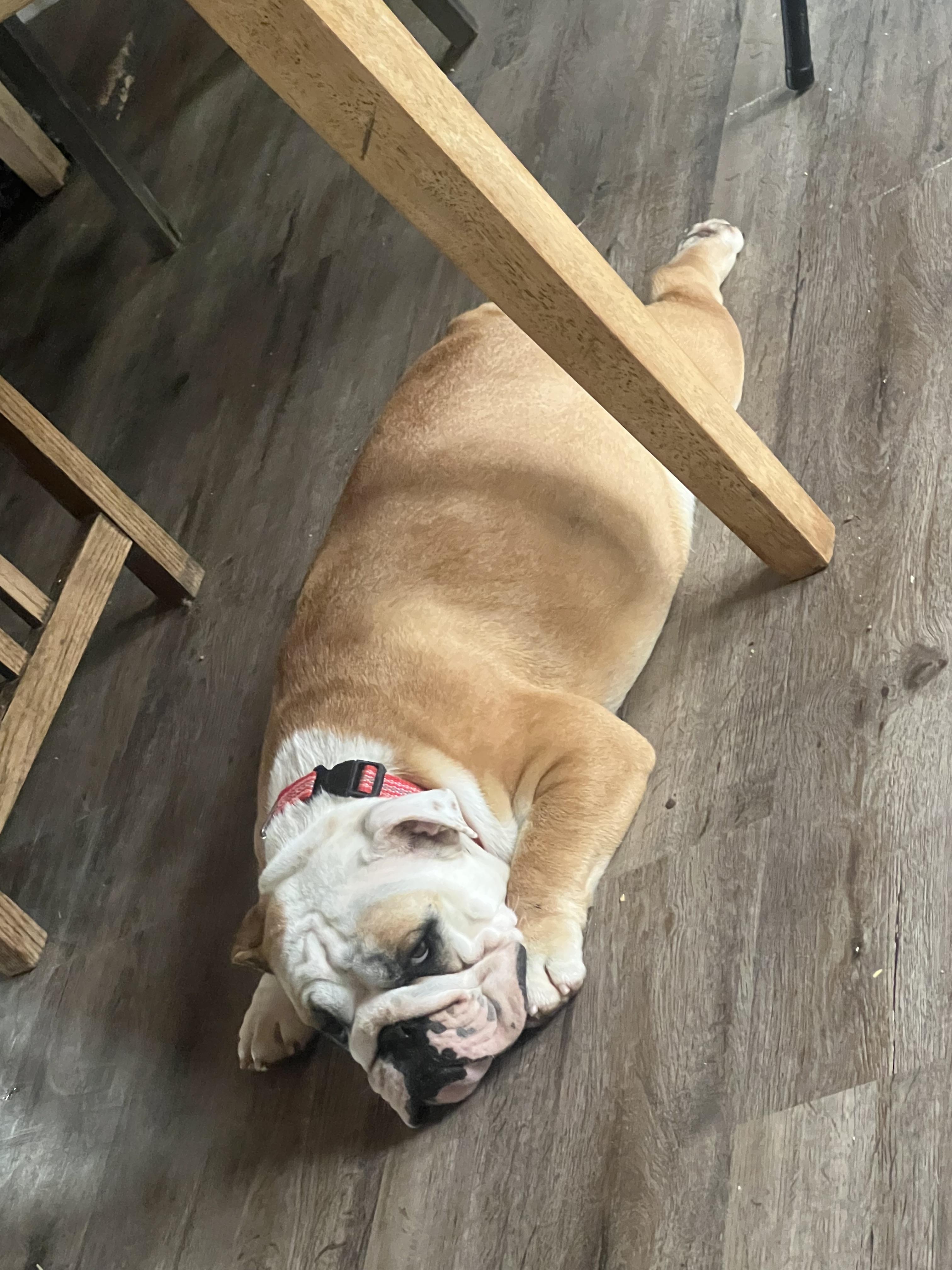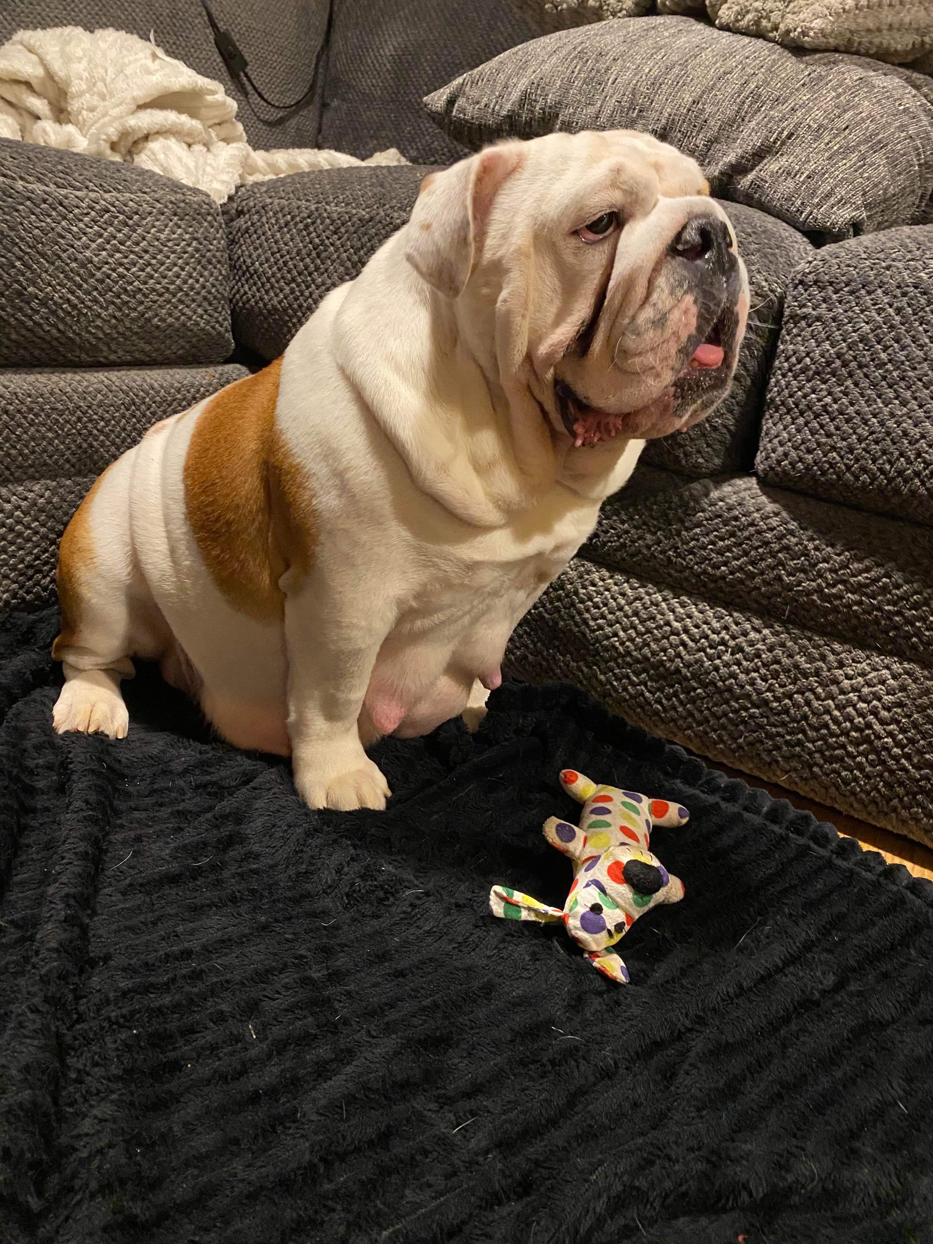 Meschach is a couch potato. She is a wonderful mother. She loves and cares for her puppies like no other bulldog I’ve meet. She is my 9 year old son’s best friend. She has been very healthly throughout her life.