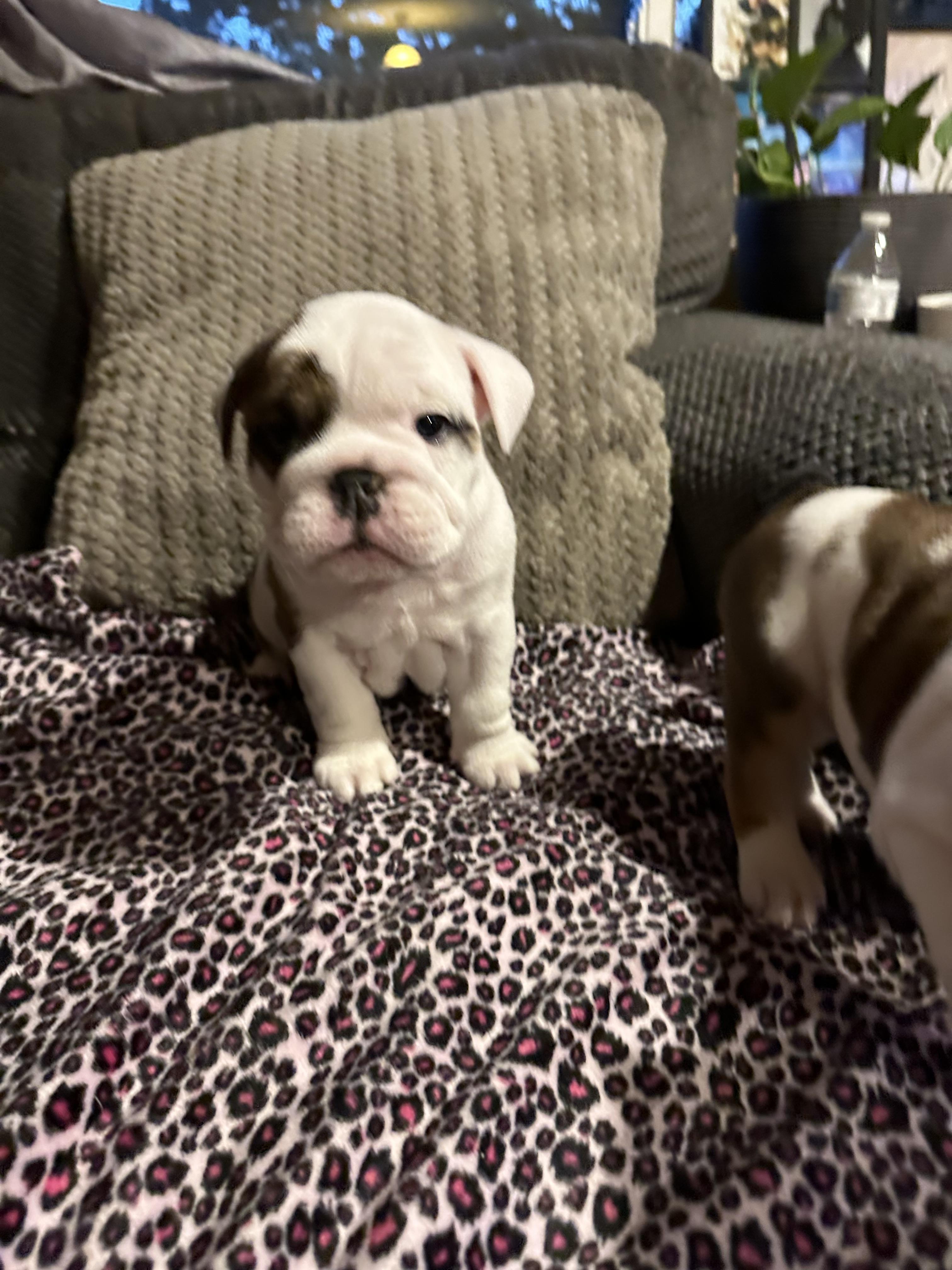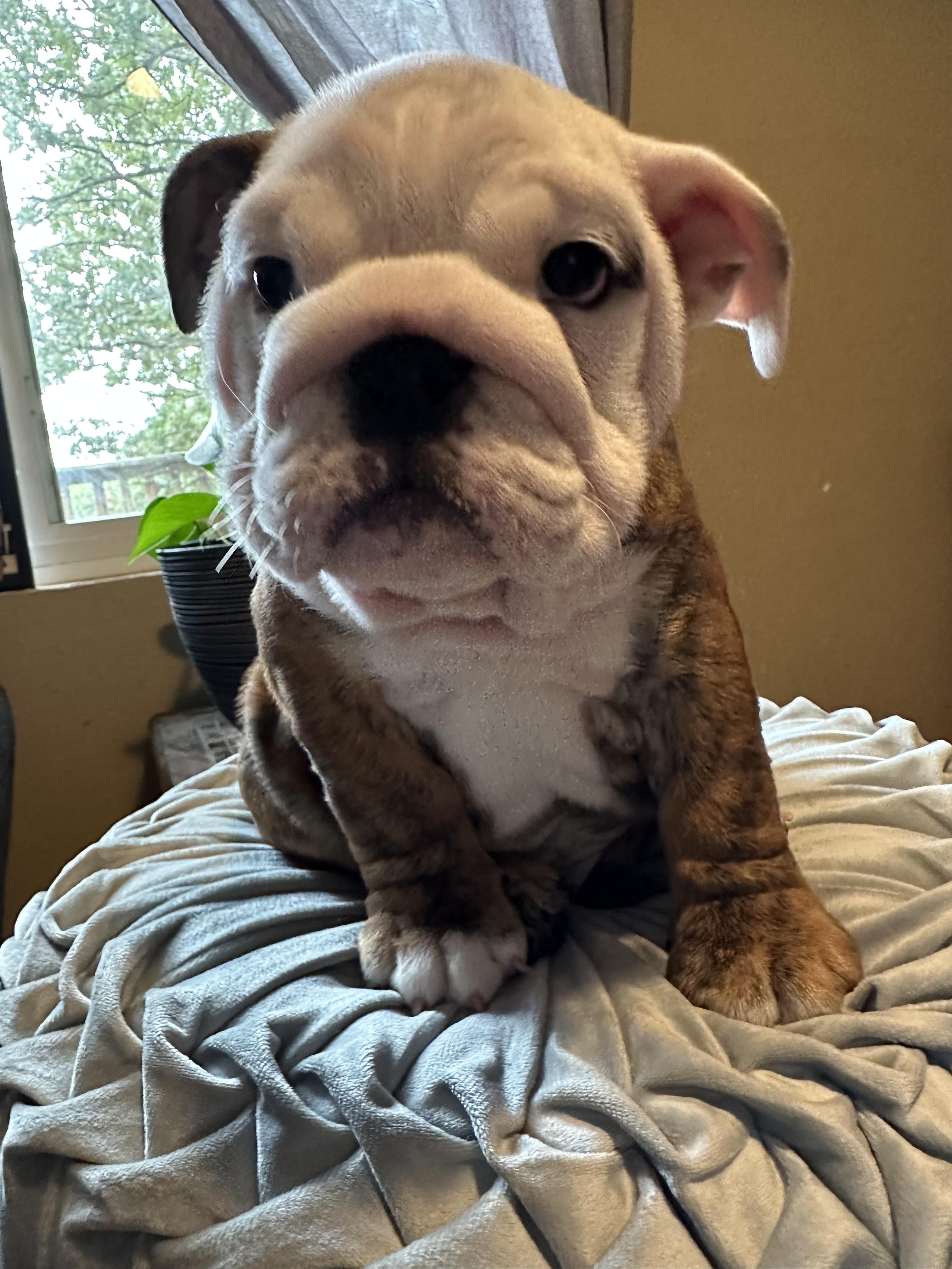 Charlie is doing so great with our Daschund dog and kittens. He loves snuggles an grunting as he lays with you. My kids love him an he sleeps with my youngest son already which is so attached now. Lol. Thank you so much Ozark bulldogs an Mrs. Sandy. Charlie truly a Dream English Bulldog for our Lil Family. Thanks so much