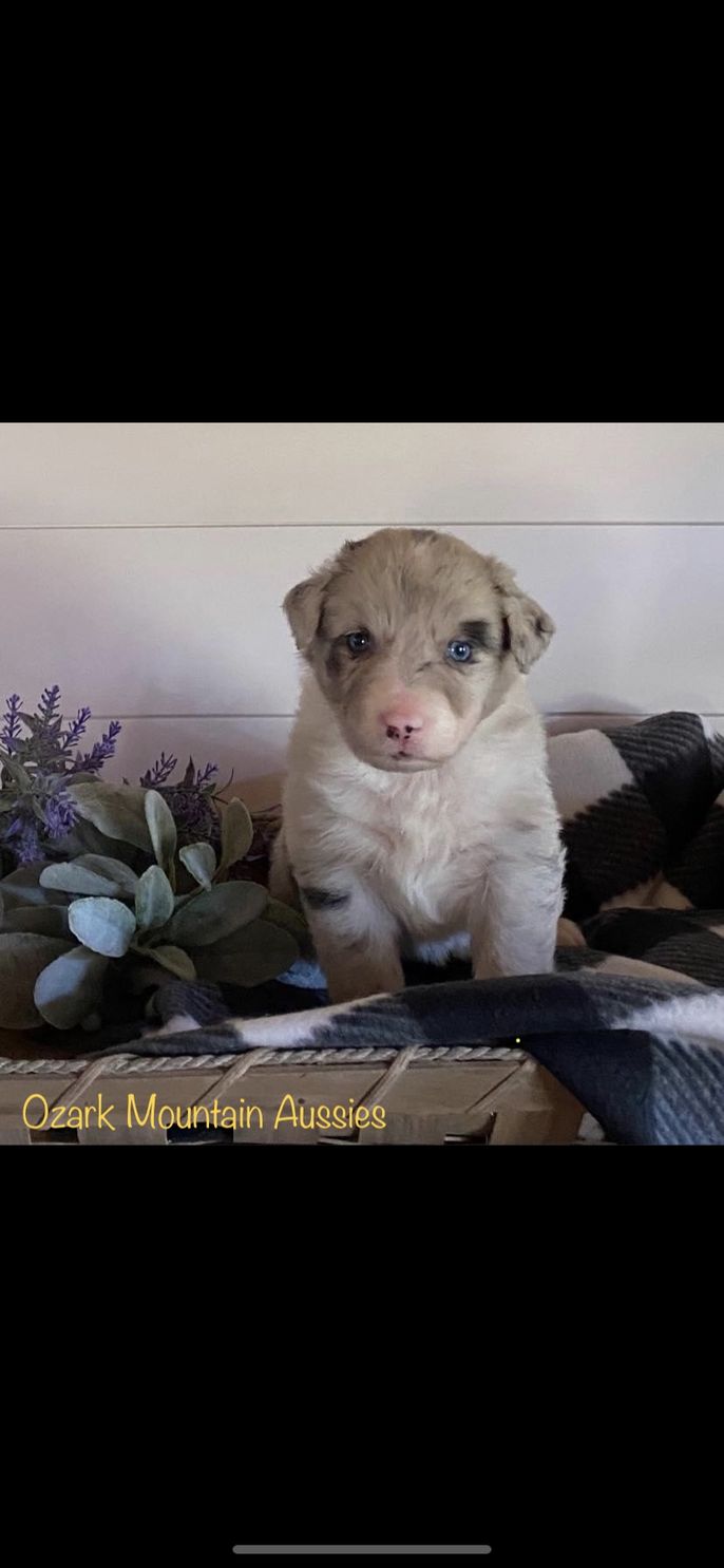 I'm Buffy S., the breeder behind Ozark Mountain Aussies located in Leslie, AR. Our dogs are born and raised on our cattle ranch in North Central Arkansas. Both parents are registered and are our personal pets. The mother is a Red/White Bi Color Australian Shepherd and the father is a Tri Blue Merle Australian Shepherd. They are both very smart and have great temperaments. The litter is also registered and each puppy is microchipped, de-wormed, had their dewclaws removed, tails docked and are UTD on shots. They have been kept on site at our ranch with the parents and under the constant care and supervision of a veterinarian, Dr. John Stephenson DVM (my husband). Please call or message me