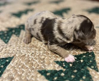 Delta is a gorgeous mini Aussie . She is only 20lbs and is borderline to be considered toy sized! She is a incredibly intelligent, agile and super fast ! She loves naps, cuddle, but also running lightning speed for exercise!