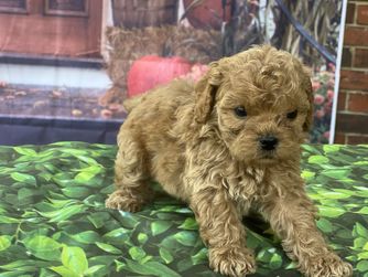 Poodle puppies are toy size. Sizes will vary depending on the parent dogs.