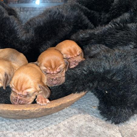 Our puppies include red, liver and tan, and black and tan. Colors will vary depending on the parent dogs.