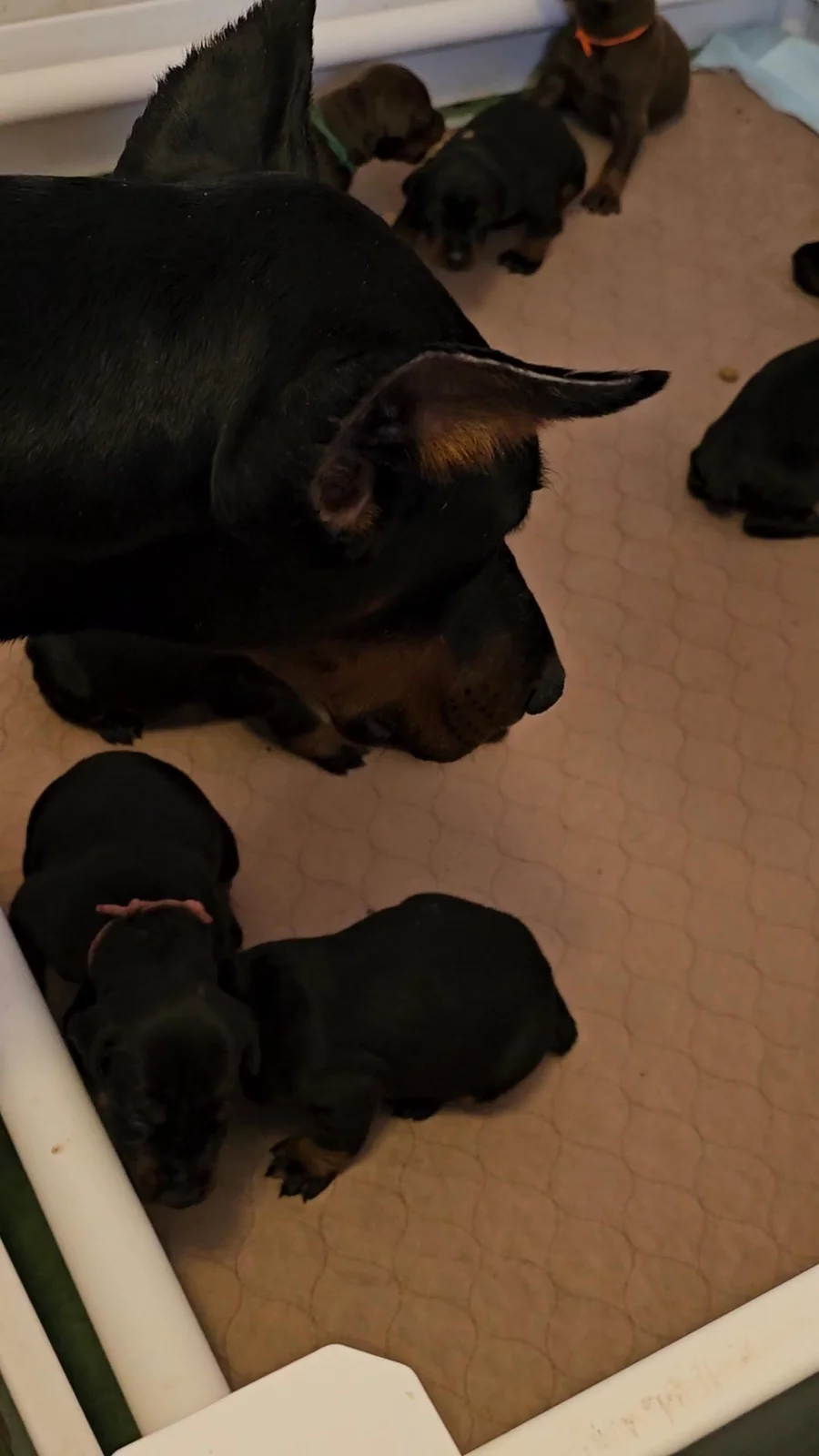 We come from a family of breeders. When we bought our home on 60 acres in the Ozark Mountains we were gifted a pick of the litter female to start our own breeding program. She has proven to be an excellent representation of the breed and we have loved passing down her impressive qualities. We value responsible breeding practices and want to do our part to promote ethical breeding so that the Doberman Pinscher will continue to thrive for many generations.