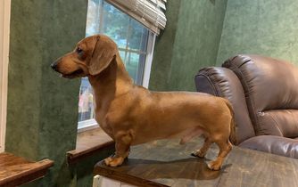 Sheldon is a male Dachshund. Carefully selected as a great representative of his breed, Jonni decided to make him part of their program. Jonni has passed Good Dog’s screening process, which involved a review of their breeding practices, environment, and the mental and physical health of their dogs.