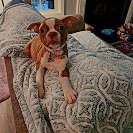 Pepper is a female Boston Terrier. Carefully selected as a great representative of her breed, amy decided to make her part of their program. amy has passed Good Dog’s screening process, which involved a review of their breeding practices, environment, and the mental and physical health of their dogs.
