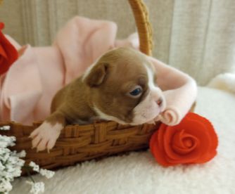 Poppy is a female Boston Terrier. Carefully selected as a great representative of her breed, amy decided to make her part of their program. amy has passed Good Dog’s screening process, which involved a review of their breeding practices, environment, and the mental and physical health of their dogs.